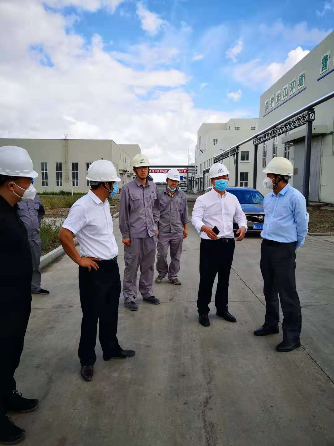 2021年8月25日省生態環境廳大慶生態環境督察局尹英吉局長、綏化市生態環境局李相林副局長及安達市生態環境局王成局長、王大剛副局長到黑龍江京盛華環保科技有限公司檢查指導危險廢物處置工作,著重檢查了從黑龍江龍革投資集團有限公司轉移的危險廢物處置情況。黑龍江京盛華環保科技有限公司總經理陳子清、常務副總經理申勇、安環總監蔡巖等陪同檢查,現場匯報公司危險廢物處置情況。